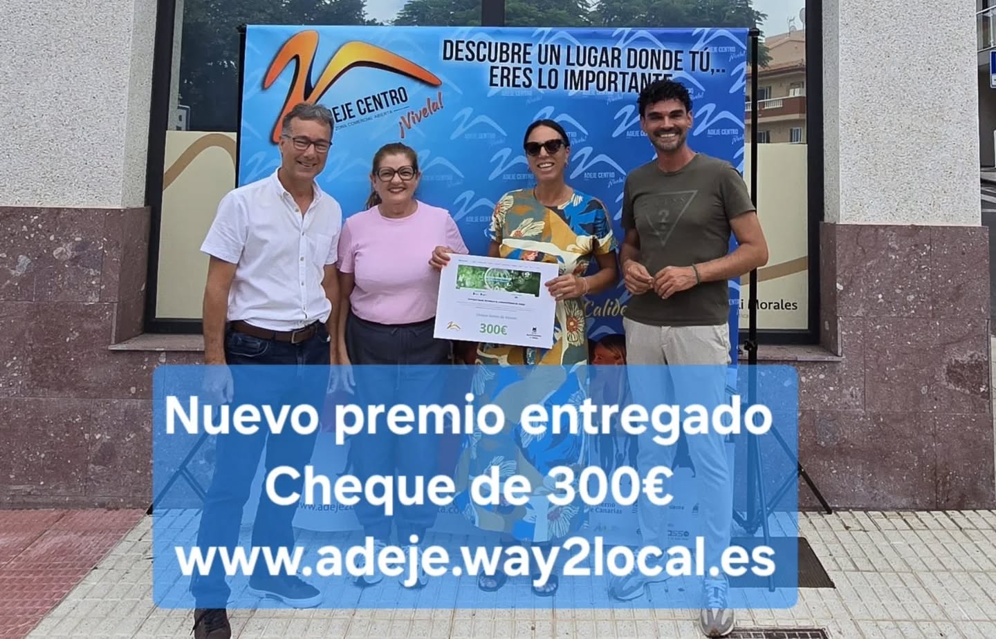 El 16 de junio de 2025 realizamos el sorteo para todos los clientes que participaron en la plataforma Adeje Way2Local. El premio total de 500 € se dividió en dos cheques regalo: uno de 300 € y otro de 200 €.